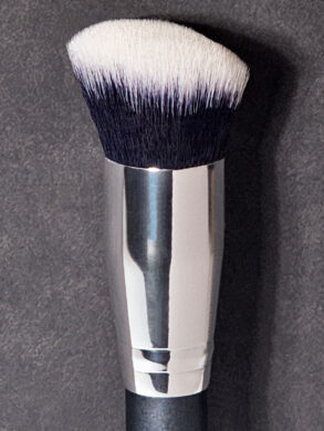 This is the perfect brush to apply any foundation, including all formula types. The vegan bristles are very dense and incredibly soft for comfortable streak-free application with a seamless finish. The tapered angle is perfect to smoothly reach areas around the eyes and nose as well. Seven layers of lacquer on the matte black wood handle means it will always feel good in your hand and the extra thick aluminum ferrule, all assembled with eco-friendly glue, means this ultra high quality brush is built to last.