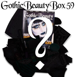 This subscription currently starts with Gothic Beauty Box 59. Gothic Beauty Box #58 and #59 are currently in stock and shipping immediately. All other past Boxes are SOLD OUT. You can cancel your subscription’s rebilling at any time. If you’d like to receive a discount prepaying a year of Gothic Beauty Boxes, with no rebilling, you can do so at this link to start with #58 or this link to start with #59.