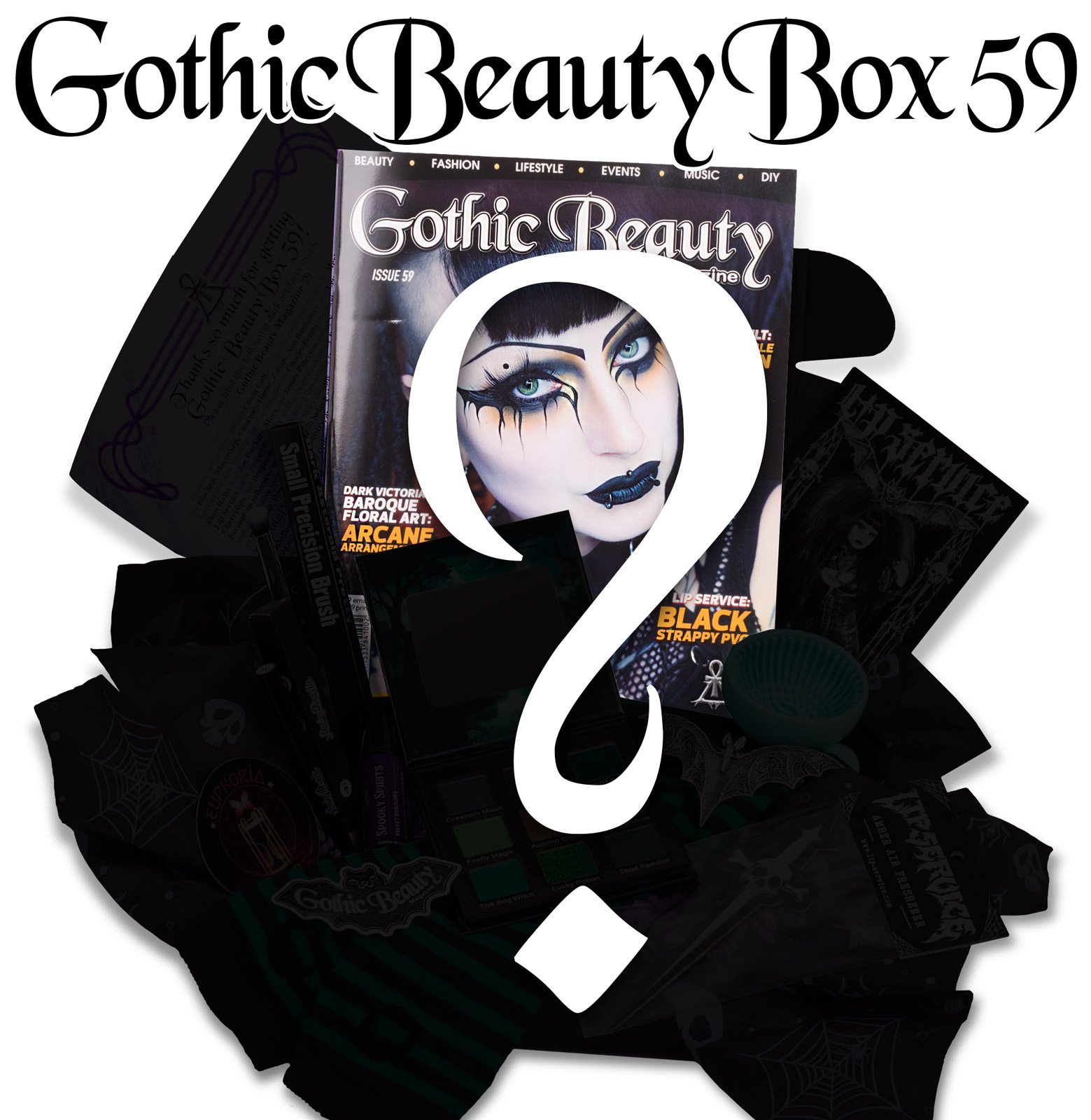 Every box is full of fun surprises, so the photo is just an example of the a Gothic Beauty box, showing the types of items you could find in the upcoming box. The Gothic Beauty box which goes with Gothic Beauty Magazine #59 is full of surprises and gothic goodness!